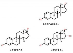 Here are the three different estrogens, next to them are progesterone and testosterone.