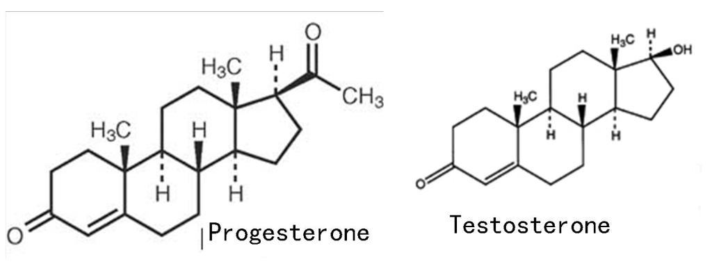This is natural progesterone (left) next to synthetic progesterone (right).
